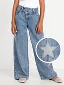 Super Baggy Wide-Leg Crossover Jeans for Girls