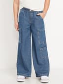 High-Waisted Pull-On Super Wide-Leg Cargo Jeans for Girls